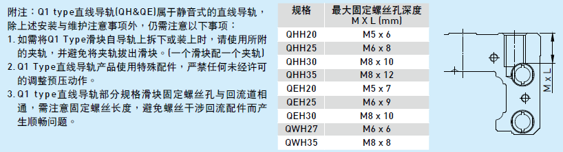 5. 任意拆解直線導軌的零配件有可能造成異物進入滑塊或降低直線導軌的精度,請勿任意拆解直線導軌。