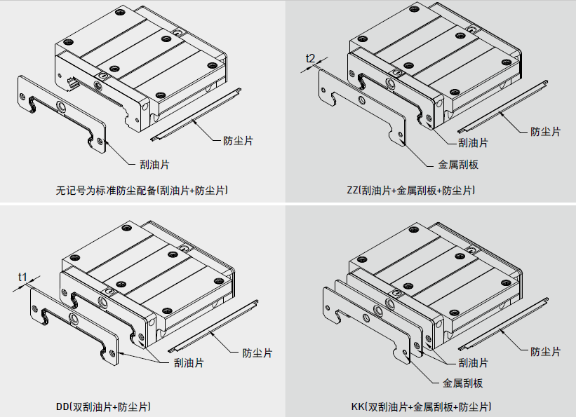 阻止加工鐵屑或塵粒進(jìn)入滑塊里面,破壞珠道表面而降低直線導(dǎo)軌壽命。