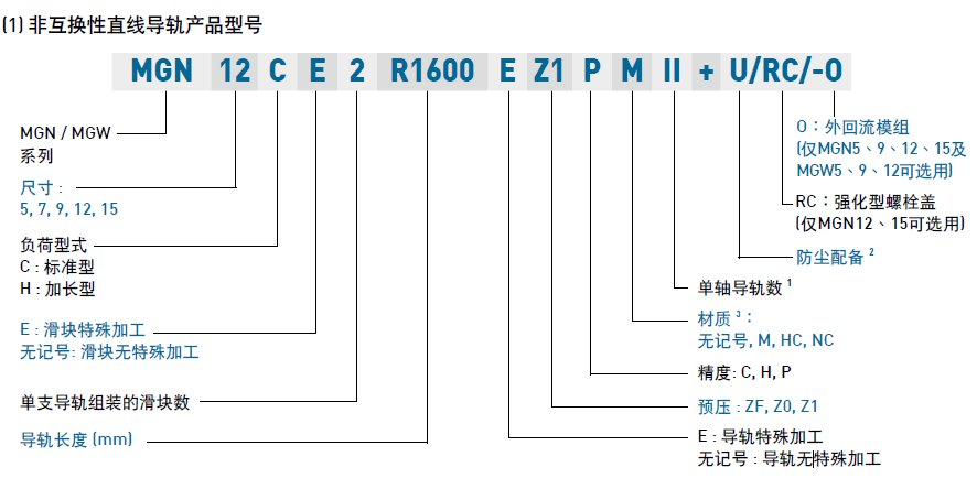 (1) 非互換性直線導軌產品型號