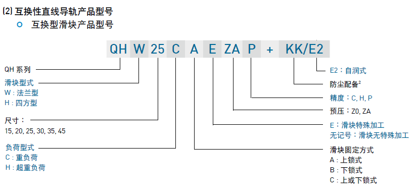 (2) 互換性直線導(dǎo)軌產(chǎn)品型號