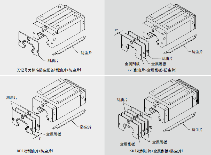 阻止加工鐵屑或塵粒進入滑塊里面,破壞珠道表面而降低直線導軌壽命。