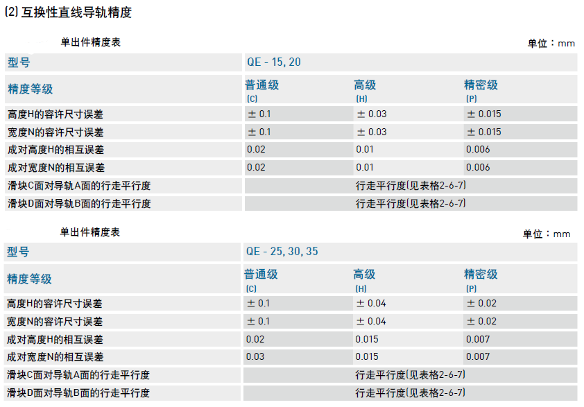 QE系列直線導軌的精度,分為普通、高、精密、超精密、超高精密級共五級,客戶可依設備精度需求選用精度。